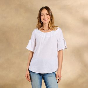 Texture defines this flowing top??tonal embroidery on a cotton dobby fabric and novelty yoke rich in eyelet details. Center placket with three covered buttons. raw edge ruffles at the neckline. Cotton. Machine wash. Imported. Exclusive. Sizes XS (0?C2). S (4?C6). M (8?C10). L (12?C14). XL (16?C18). XXL (20?C22). Approx. 23l.