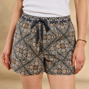 A charming mixed-print bandana pattern graces our flowing. straight-leg Ashanti Pants. So comfortable and flattering with antiqued silver snap closure and drawstring tie at elastic waist with zip fly and slant front pockets. Tencel?. Machine wash. Imported. Exclusive. Sizes 2?C16. 27 inseam.