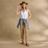 Sporty and feminine. our cotton gauze. eyelet pants are loose and flowing. with wide-leg silhouette. scalloped hem. side seam pockets and back patch pockets. Fully lined. with button closure zip fly and tie at waistline. Machine wash. Imported. Exclusive. Sizes 2?C16. 29.5 inseam