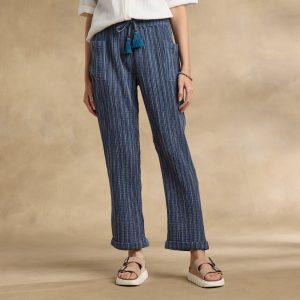 Beautifully textural. our easy Campari Pants are fashioned from striped yarn-dyed cotton with tacked cuffs. two patch pockets and elastic waistband with tasseled and beaded twisted rope tie. Machine wash. Imported. Exclusive. Sizes XS (0?C2). S (4?C6). M (8?C10). L (12?C14). XL (16?C18). XXL (20?C22). 25.5 inseam.
