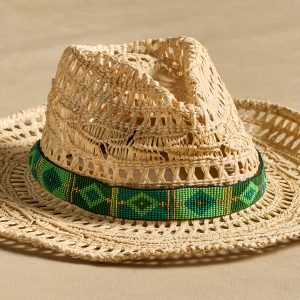 Dress up any hat with these intriguing geo-patterned glass bead hat bands. handmade by female craftspeople. Square knot adjustable closure. Imported. Sundance exclusive. 1w x 20?C30l.