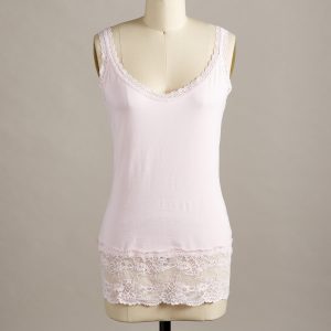 Our essential. lace-trimmed tank is slim-fitting for plenty of versatility. Pair with a sweater or tee for a glimpse of flirty lace. Cotton/spandex. Machine wash. Portugal. Exclusive. Sizes XXS (00). XS (0–2). S (4–6). M (8–10). L (12–14). XL (16–18). Approx. 23.5l.