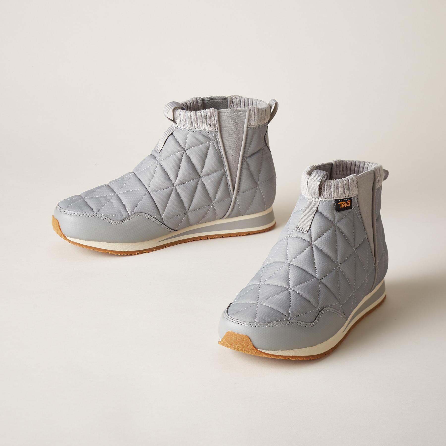 Teva? brings quilted comfort to these sporty and lightweight ‘Ember’ boots. heralded as the lovechild of a sleeping bag and a sneaker. The ultimate travel companion. ultra packable. with flexible rubber soles. Textile. Imported. Whole sizes 6 to 11. 3/4 heel.
