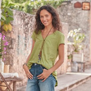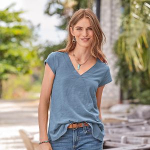 Comfy every day. this tee boasts subtle. directional seaming that flatters. V-neck and rounded. hi-lo hem. Cotton slub. Machine wash. Imported. Sizes XS (0-2). S (4–6). M (8–10). L (12–14). XL (16-18). XXL (20–22). Approx. 29.75l.