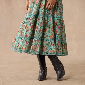 Feminine and flowing. a palette of gorgeous florals with contrast border print details. pintucking. elastic waist. double flutter sleeves and tiered hem. Fully lined. Cotton/silk. Hand wash. Imported. Exclusive. Sizes XXS (00). XS (0??). S (4??). M (8??0). L (12??4). XL (16??8). Approx. 49.5l.