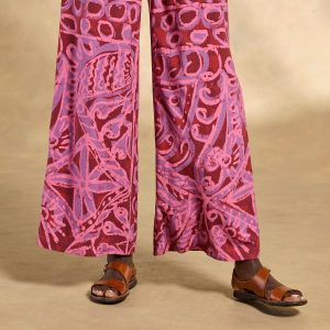 The easiest. breeziest. warm weather pants. with a beautifully draping wide-leg silhouette. big floral print and side seam pockets. Viscose. Machine wash. Imported. Exclusive. Sizes XS (0–2). S (4–6). M (8–10). L (12–14). XL (16–18). XXL (20–22). 29 inseam.