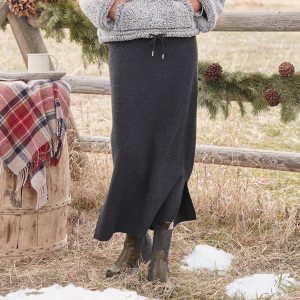 Our versatile. relaxed rib skirt is sure to become a staple of your wardrobe. Straight fit. with elastic/drawstring waistline and side slits for easy movement. Nylon/wool/spandex. Hand wash. Imported. Exclusive. Sizes XS (0-2). S (4-6). M (8-10). L (12-14). XL (16-18). XXL (20-22). Approx. 35.5l. Please size down for a more fitted look.