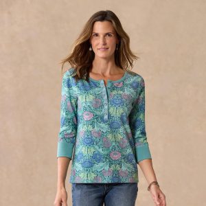 Our thermal henley in an oversized placed floral print is so lovely with embroidery at the placket. metal buttons and contrast twill tape details. Cotton/spandex. Machine wash. Imported. Exclusive. Sizes XXS (00). XS (0??). S (4??). M (8??0). L (12??4). XL (16??8). Approx. 23.5l.