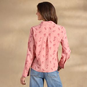 Soft and light. our mid length floral shirt is the perfect blend of comfort and style with shirring details at the front yoke. side slits. novelty cuffs with single button closure and two front patch pockets. Lyocell. Machine wash. Imported. Exclusive. Sizes XS (0–2). S (4–6). M (8–10). L (12–14). XL (16–18). XXL (20–22). Approx. 22l.